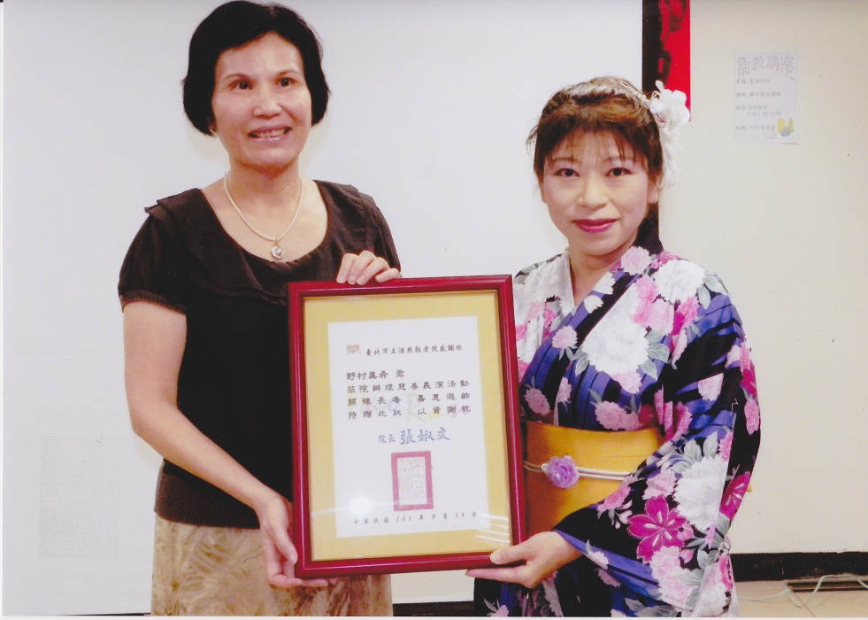 東日本震災で多大なお見舞いをいただいたお礼と感謝をこめて、台湾台北市で「日本芸能文化フェスタ」が開催され「野村真希」が歌の親善大使として出席させていただきました。