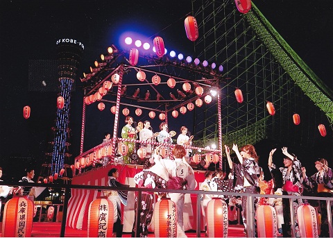全国を代表する盆踊り曲を生唄、生演奏で踊っていただけるのは『こうべ海の盆踊り』だけです!